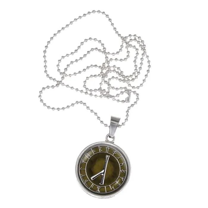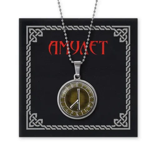 Материал и изготовление: Бижутерный сплав с покрытием под серебро. Изображение руны расположено под стеклянной линзой.
