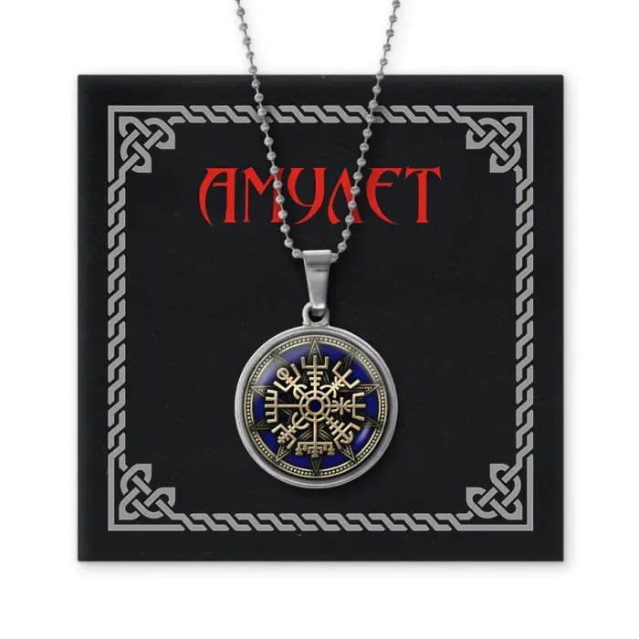 Кулон-амулет из бижутерного сплава с покрытием под серебро. Изображение защищено выпуклой стеклянной линзой.