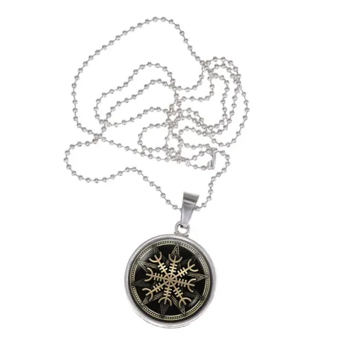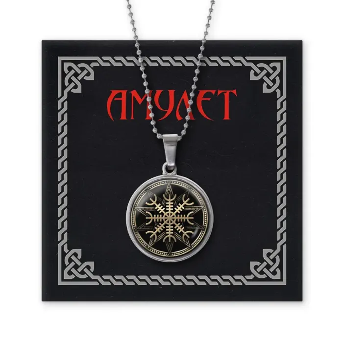 Амулет-кулон из бижутерного сплава с покрытием под серебро. Изображение защищено выпуклой стеклянной линзой.