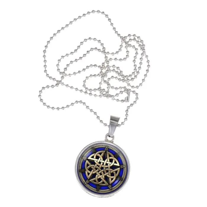 Кулон-амулет «Кельтский пентакль» из бижутерного сплава с изображением пентаграммы под стеклянной линзой.