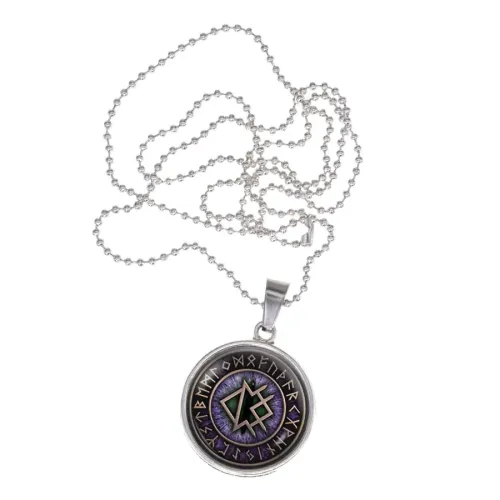Компактный кулон-амулет из бижутерного сплава с покрытием под серебро, символизирующий защиту и гармонию. Изображение расположено под выпуклой стеклянной линзой диаметром 20 мм, что придаёт ему особую привлекательность. Размер кулона составляет 26x22 мм, а в комплект входит металлическая цепочка длиной 49 см с застёжкой и фирменный чёрный вкладыш. Упаковка выполнена в виде прозрачного полипропиленового пакетика без подвеса с этикеткой, на которой указано описание амулета. Рунический амулет Целебные руны традиционно используется для поддержки здоровья и благополучия благодаря своим мощным символам: Кеназ, Перт и Ингуз.