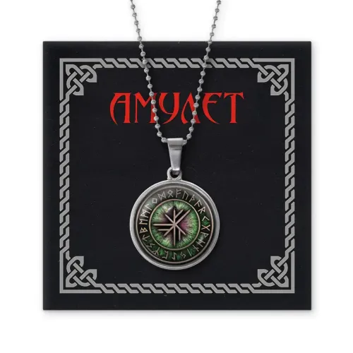 Материал и изготовление: Бижутерный сплав с покрытием под серебро. Изображение амулета защищено выпуклой стеклянной линзой диаметром 20 мм.