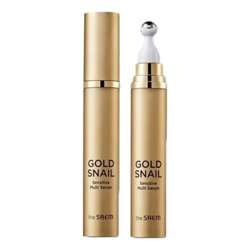 Сыворотка-роллер для лица Gold Snail Sensitive Multi Serum от корейского бренда The Saem — это эффективное средство для ухода за кожей. Она содержит уникальный комплекс компонентов, которые помогают сохранить кожу здоровой, упругой и эластичной. Основные компоненты сыворотки включают пептидный комплекс из 5 видов, экстракт золотой улитки и экстракты пчелиного молочка и мёда. Эти ингредиенты питают кожу, обеспечивают её необходимыми веществами, поддерживают увлажнение и помогают уменьшить морщины.