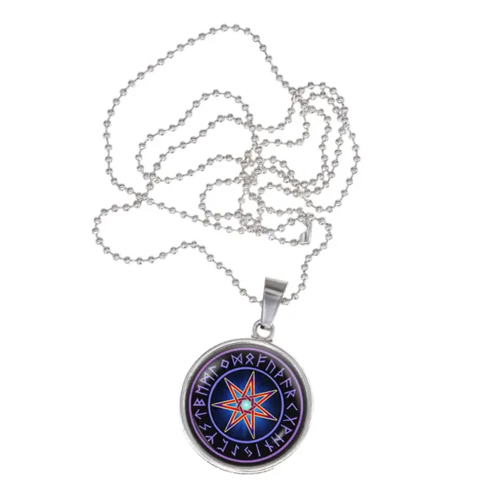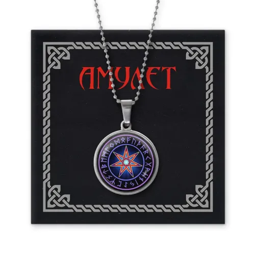 Сувенирный кулон-амулет из бижутерного сплава с изображением под стеклянной линзой.