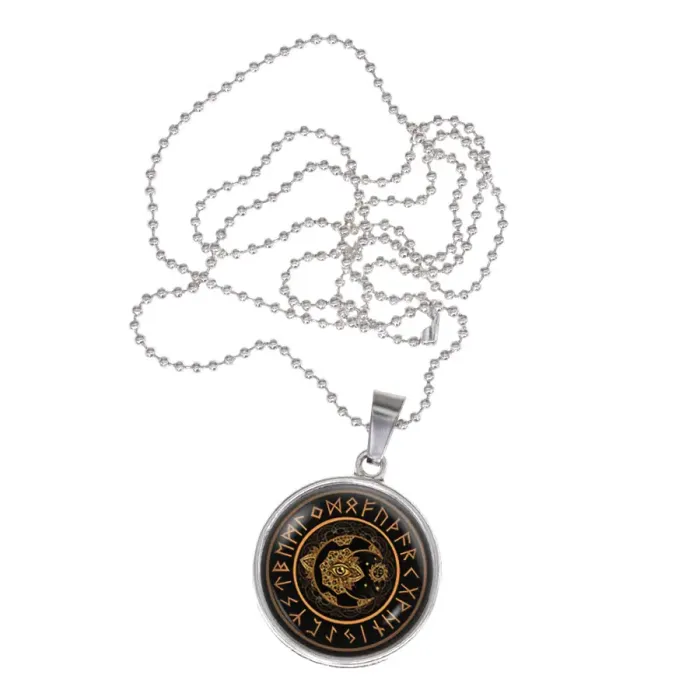 Сувенирный кулон-амулет из бижутерного сплава с покрытием под серебро и изображением под выпуклой стеклянной линзой.