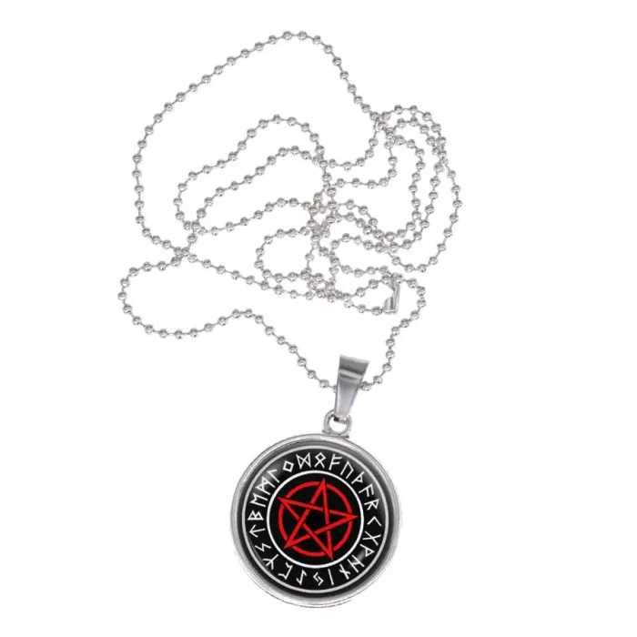 Материал и изготовление: Бижутерный сплав с покрытием под серебро. Изображение пентаграммы расположено под выпуклой стеклянной линзой диаметром 20 мм.