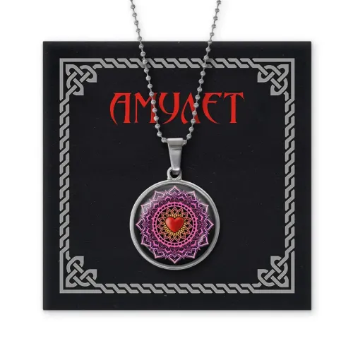 Размеры и комплектация: Размер кулона 26x22 мм. В комплекте металлическая цепочка длиной 49 см. Упаковка — прозрачный полипропиленовый пакет с этикеткой.