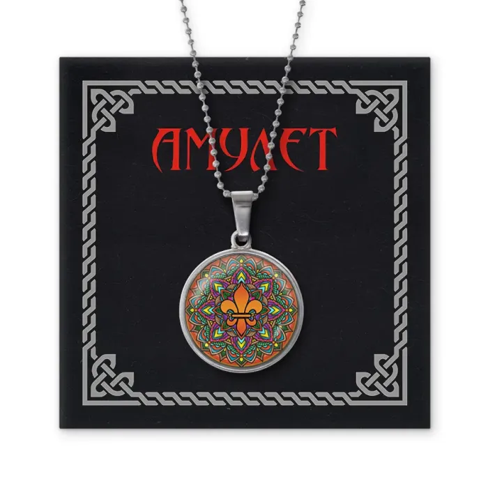 Королевская лилия на амулете символизирует достоинство, власть и успех, а также доброту и сострадание. Этот кулон традиционно используется для привлечения удачи и реализации лучших качеств личности, что делает его не только красивым аксессуаром, но и мощным оберегом.