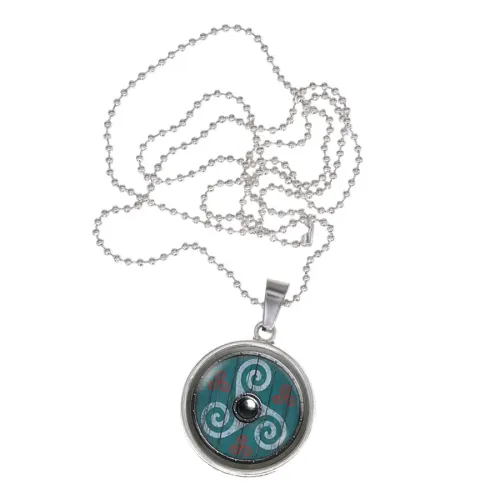 Сувенирный кулон-амулет из бижутерного сплава с выпуклой стеклянной линзой.