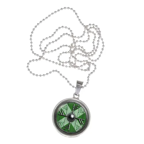 Сувенирный амулет в виде кулона из бижутерного сплава с изображением под выпуклой стеклянной линзой.