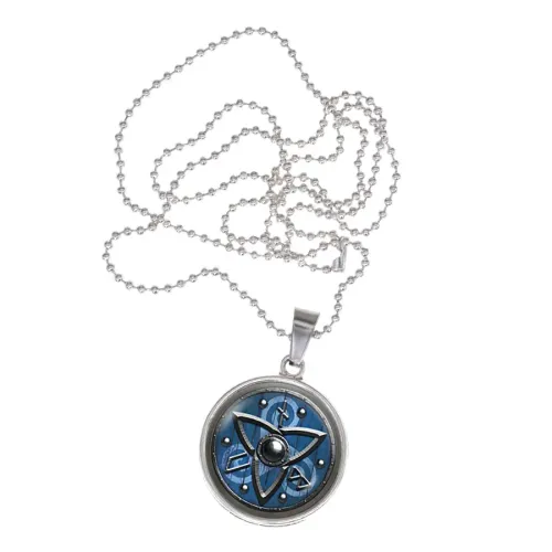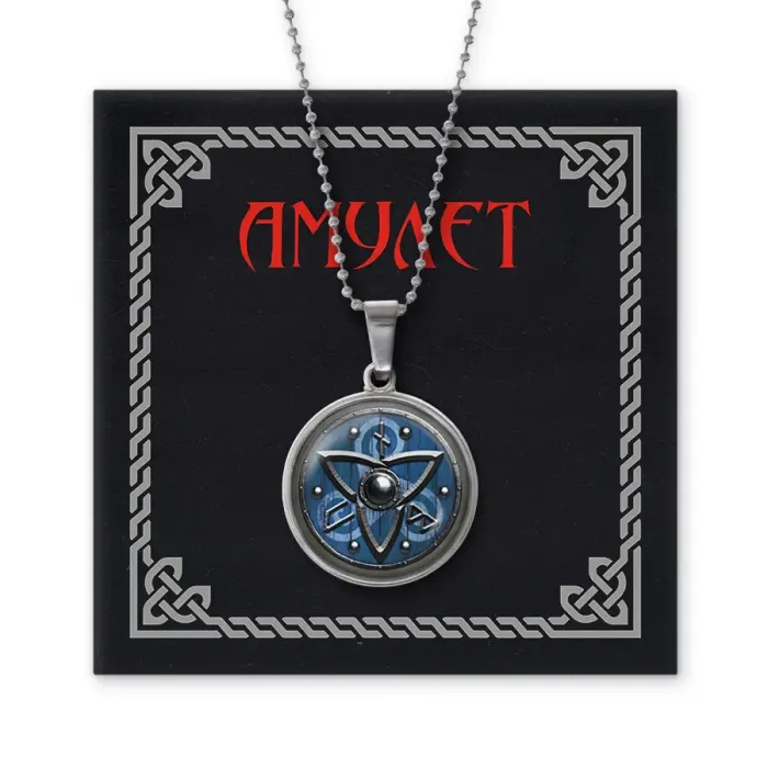Сувенирный кулон-амулет из бижутерного сплава с покрытием под серебро. Изображение расположено под выпуклой стеклянной линзой.