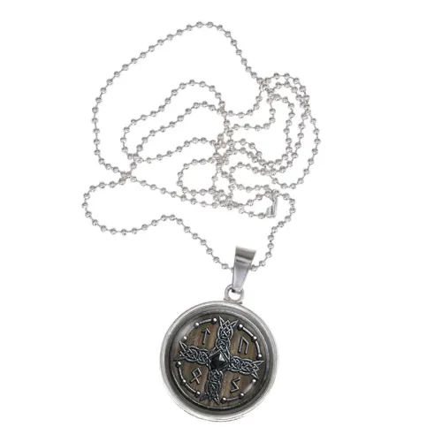 Сувенирный амулет-кулон из бижутерного сплава с изображением под выпуклой стеклянной линзой.