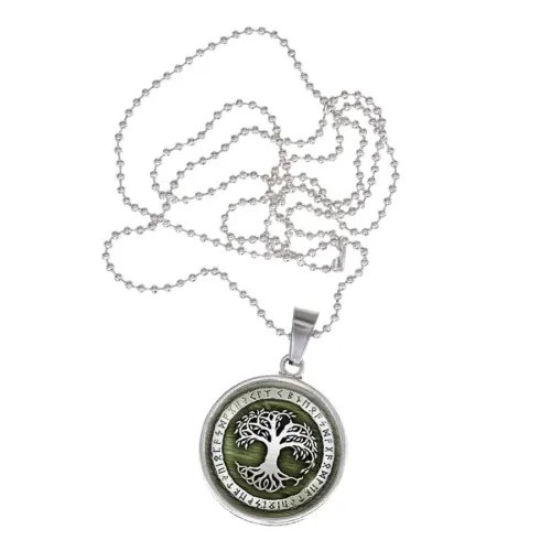 Сувенирный кулон-амулет Дерево жизни из бижутерного сплава с выпуклым стеклянным покрытием.
