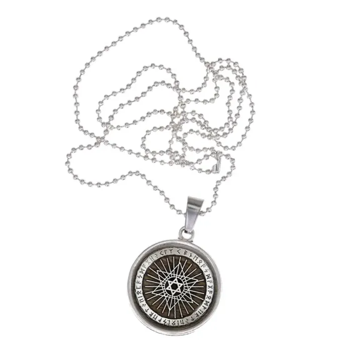 Кулон-амулет Звезда Давида из бижутерного сплава с покрытием под серебро. Изображение защищено выпуклой стеклянной линзой.