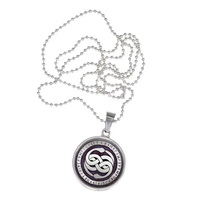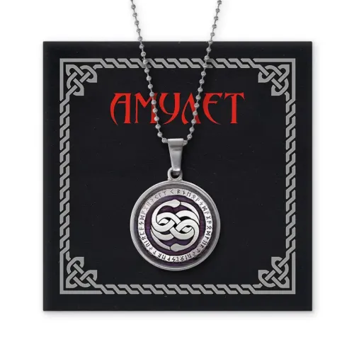 Кулон-амулет Уроборос из бижутерного сплава с изображением под стеклянной линзой.