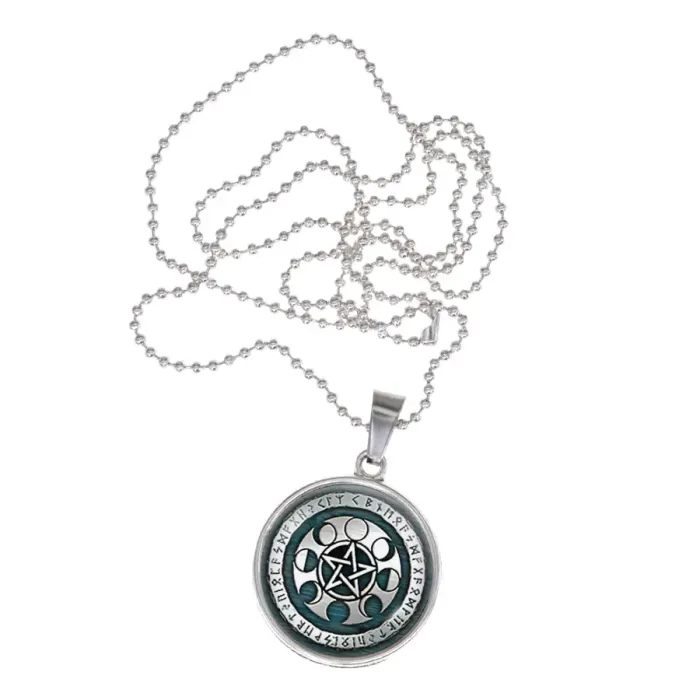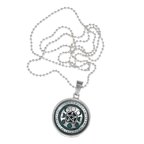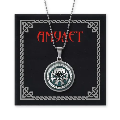 Кулон-амулет из бижутерного сплава с изображением под выпуклой стеклянной линзой.
