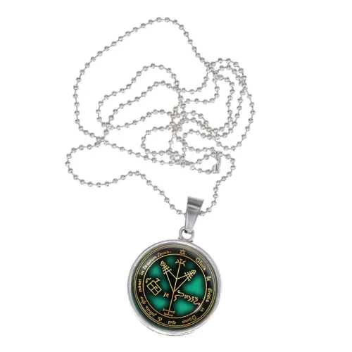 Кулон-амулет из бижутерного сплава с покрытием под серебро. Изображение защищено выпуклой стеклянной линзой.