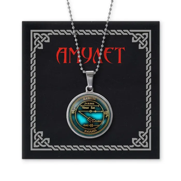 Амулет для обретения недвижимости — кулон из бижутерного сплава с покрытием под серебро и выпуклой стеклянной линзой.