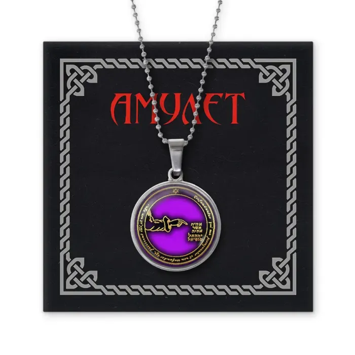 Сувенирный кулон-амулет из бижутерного сплава с покрытием под серебро. Изображение расположено под выпуклой стеклянной линзой.