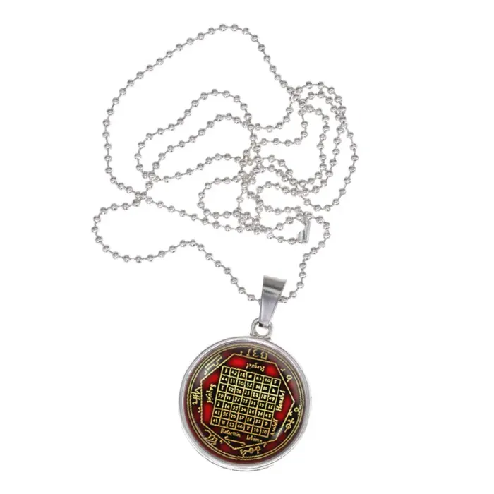 Сувенирный кулон-амулет из бижутерного сплава с покрытием под серебро. Изображение защищено выпуклой стеклянной линзой.