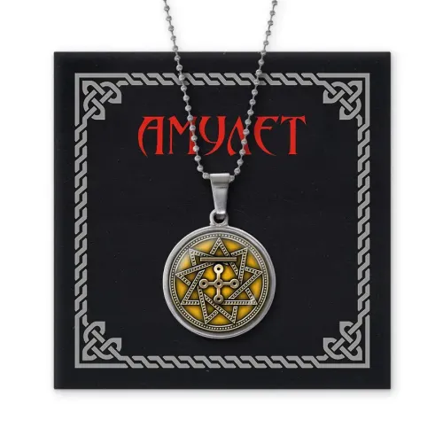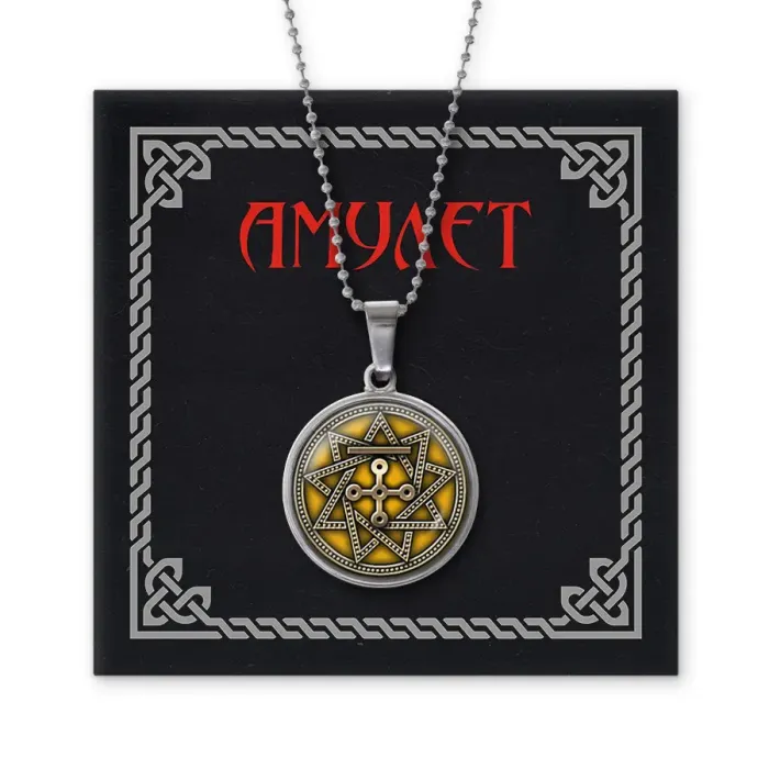 Амулет Чертог Змея — кулон из бижутерного сплава с изображением под выпуклой стеклянной линзой.