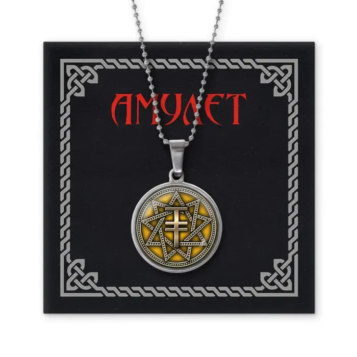 Размеры и комплектация: Размер амулета 26x22 мм, диаметр линзы 20 мм. В комплекте металлическая цепочка длиной 49 см. Упаковка: фирменный вкладыш и прозрачный полипропиленовый пакет.