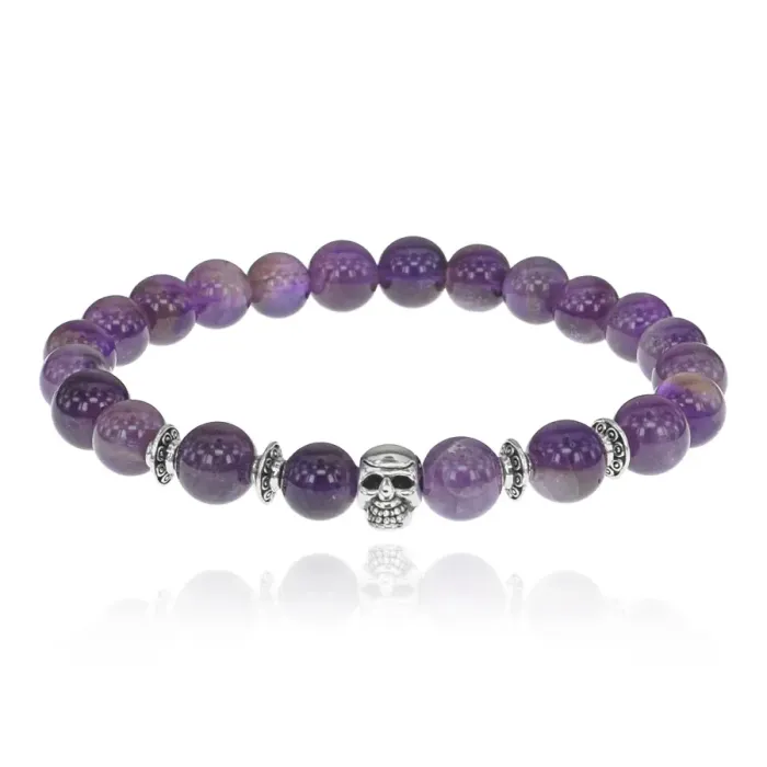 Браслет-амулет Череп с нат.камнем Аметист 8мм BSH-02-03S