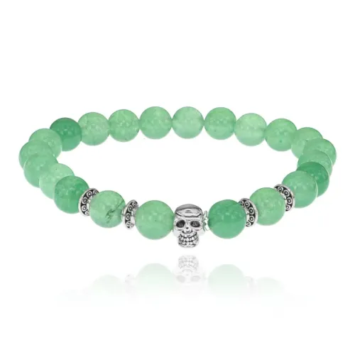 Стрейч-браслет из натурального нефрита и бижутерного сплава с декоративным элементом в виде черепа.