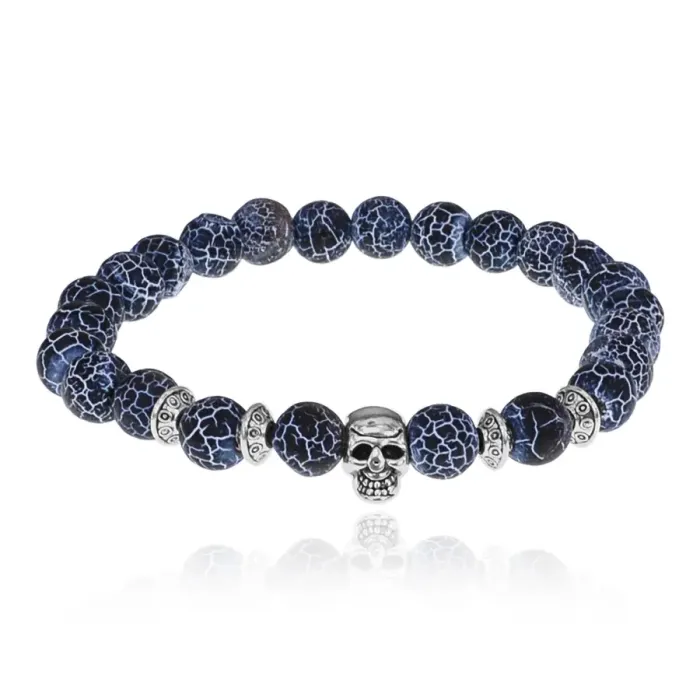 Браслет-амулет Череп с синт. камнем синий Африканский агат 8мм BSH-02-27S