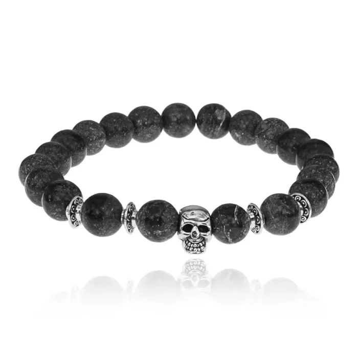 Браслет-амулет Череп с нат.камнем Змеевик 8мм BSH-02-29S