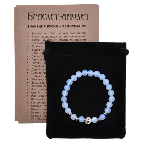 Браслет-амулет с подвеской в виде дерева жизни и бусинами из синтетического лунного камня.