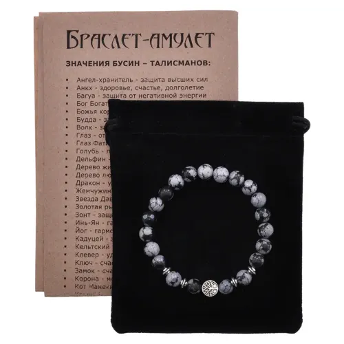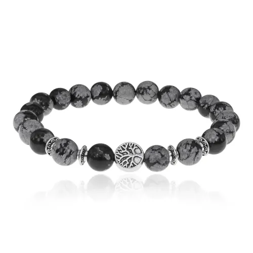 Браслет Дерево жизни с нат.камнем Снежный обсидиан 8мм BSH-05-14S