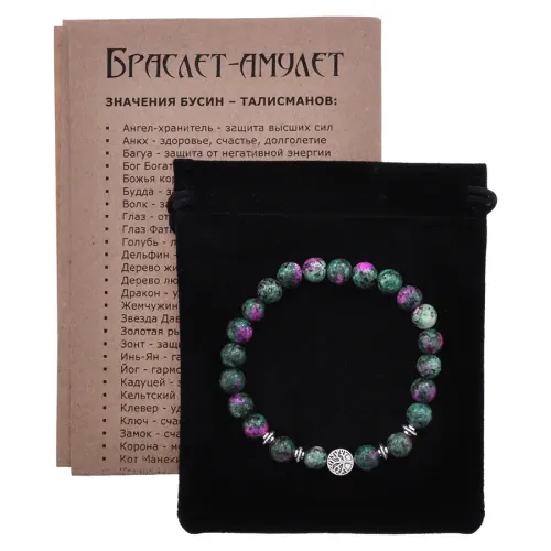 Назначение и особенности: Сувенирный аксессуар, браслет-оберег. Оттенок камня может незначительно варьироваться.