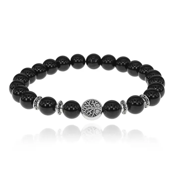 Браслет Дерево жизни с нат.камнем Черный агат 8мм BSH-05-23S