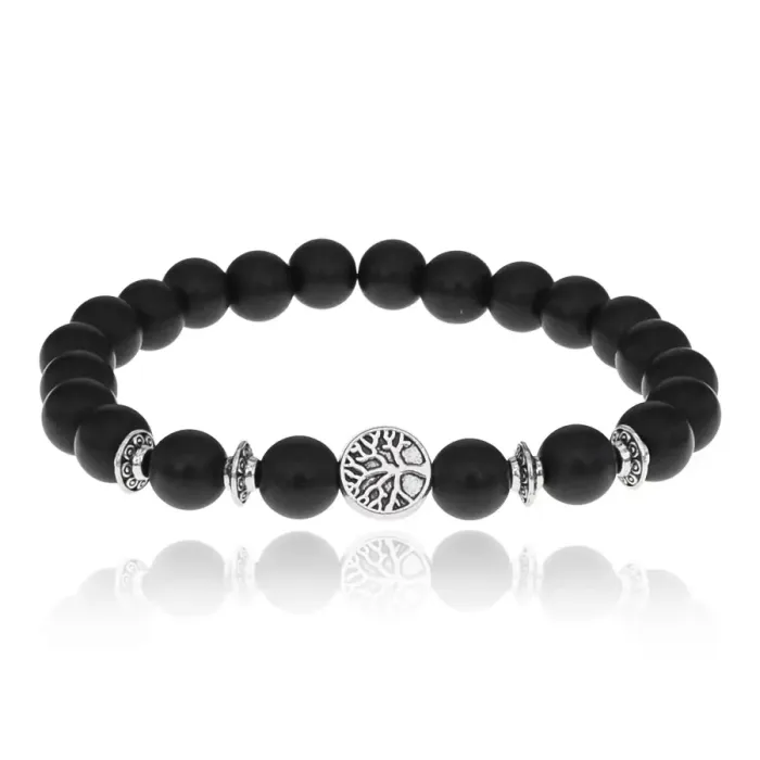 Браслет Дерево жизни с синт. камнем Шунгит 8мм BSH-05-24S