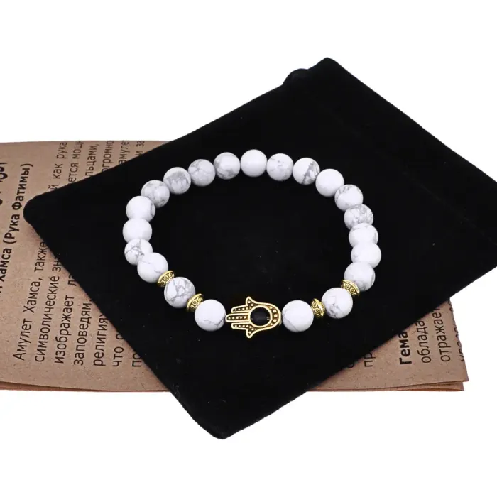 Браслет-амулет Хамса с нат.камнем Кахолонг 8мм BSHG-07