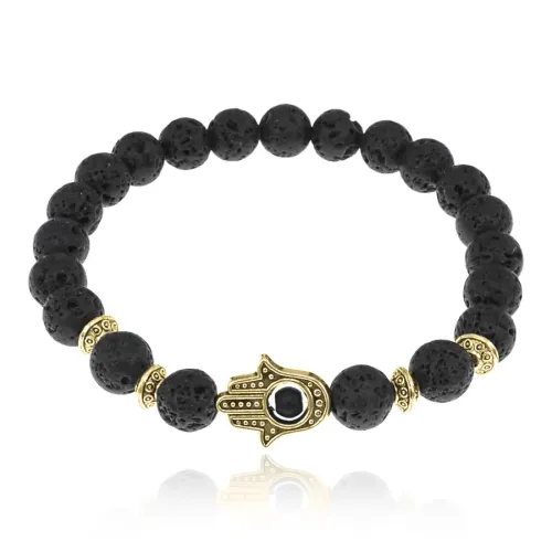 Браслет-амулет Хамса с нат.камнем Лава 8мм BSHG-09
