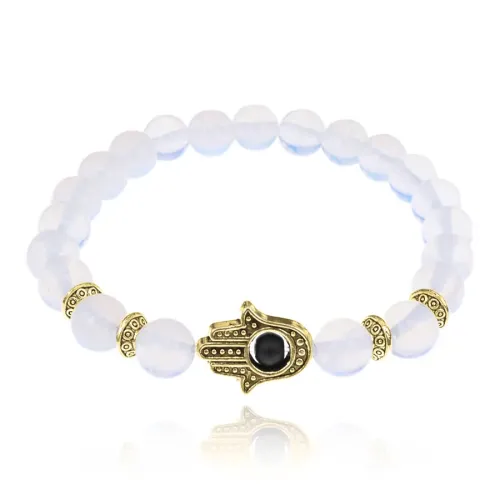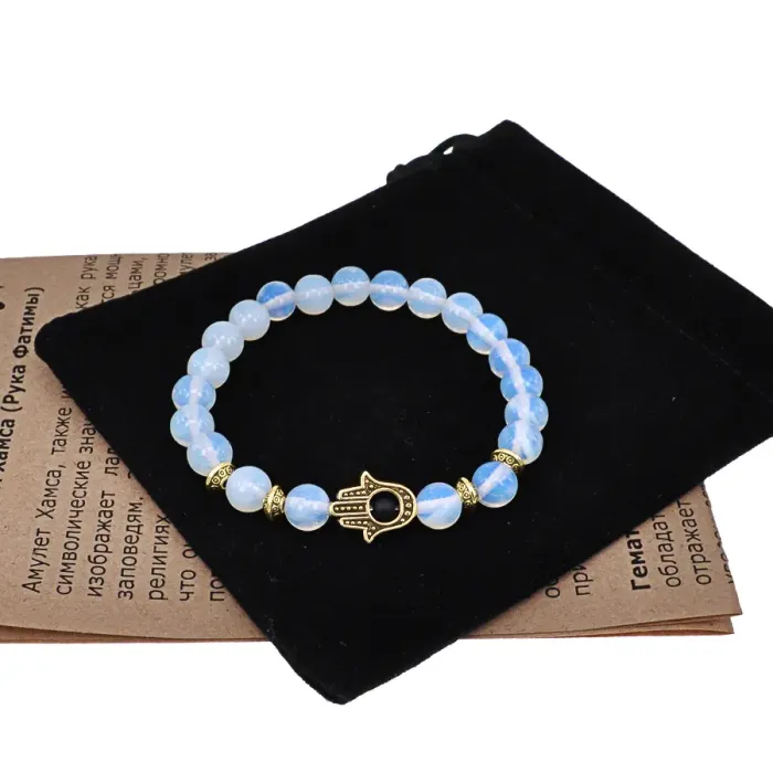 Браслет-амулет Хамса с синт. камнем Лунный камень 8мм BSHG-11