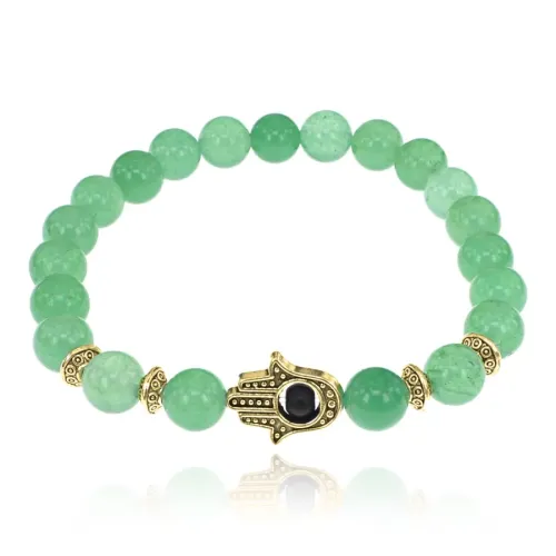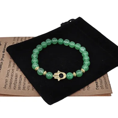 Браслет-амулет Хамса с нат. камнем Нефрит 8мм BSHG-13