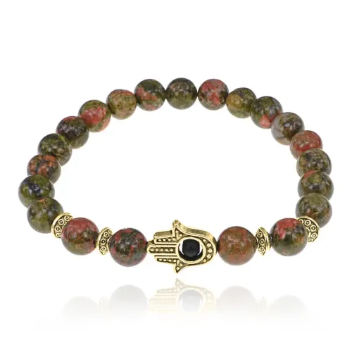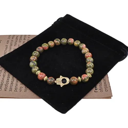 Браслет-амулет Хамса с нат.камнем Унакит 8мм BSHG-20
