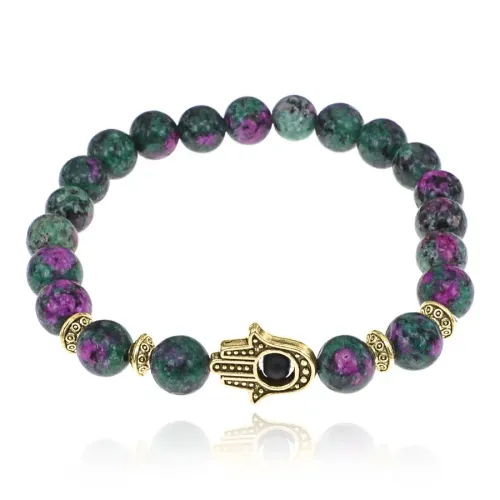 Браслет-амулет Хамса с синт. камнем Цоизит 8мм BSHG-22