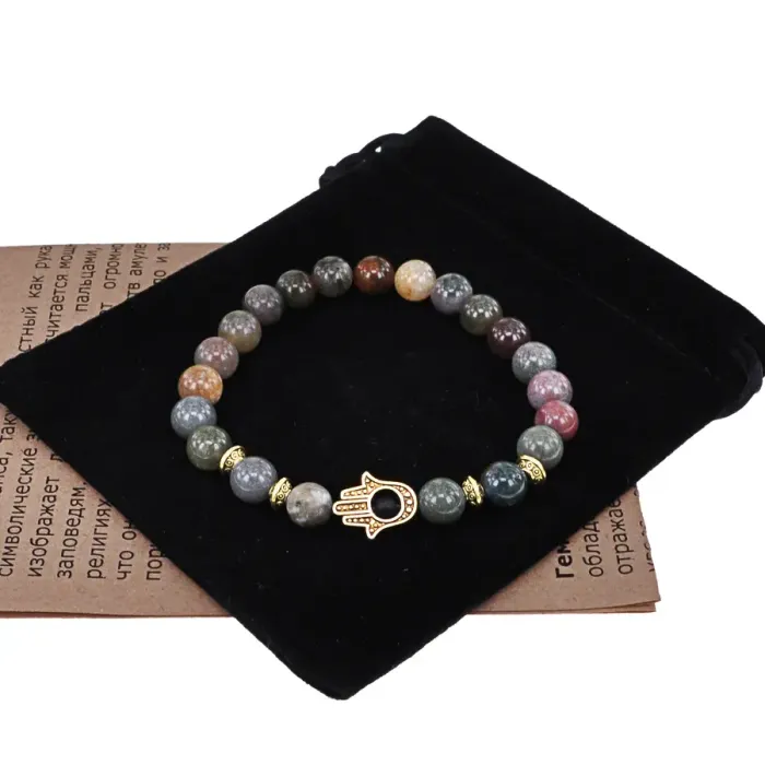 Браслет-амулет Хамса с нат. камнем Яшма 8мм BSHG-25