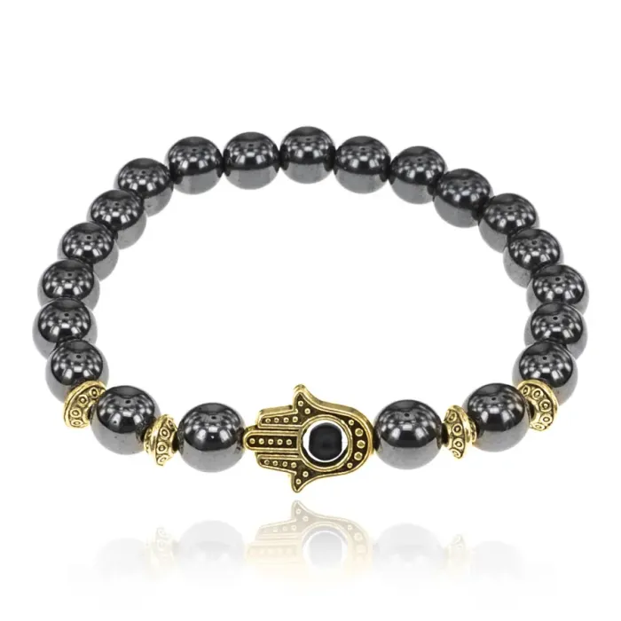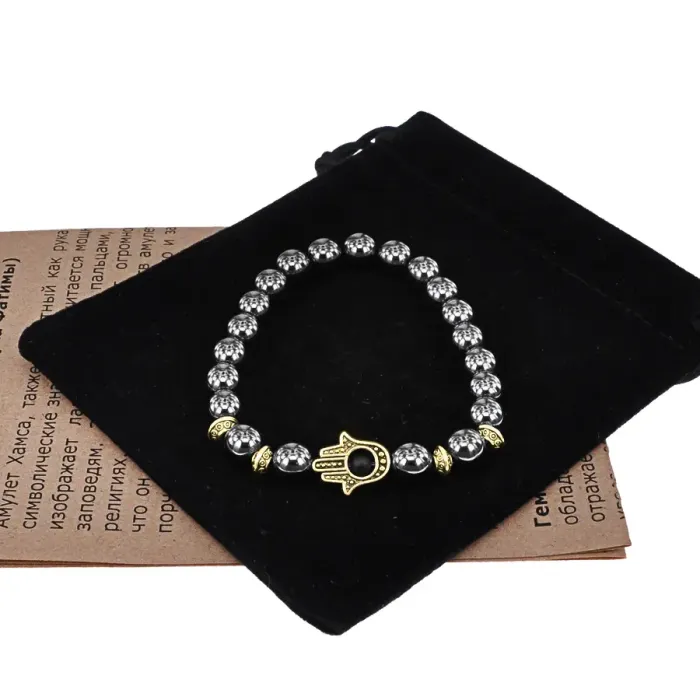 Браслет-амулет Хамса с синтетическим камнем Гематит 8мм BSHG-28