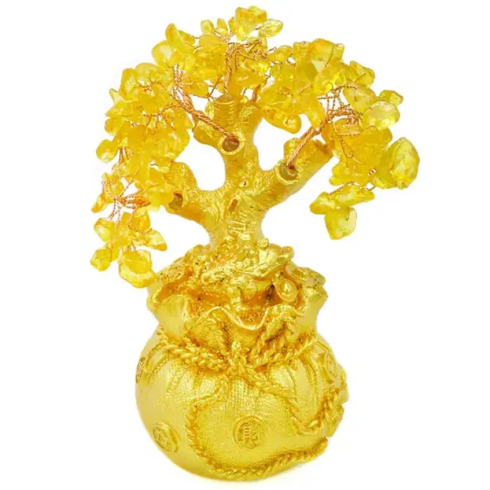 Денежное дерево с цетрином и трехлапой жабой на мешке богатства 20см V029