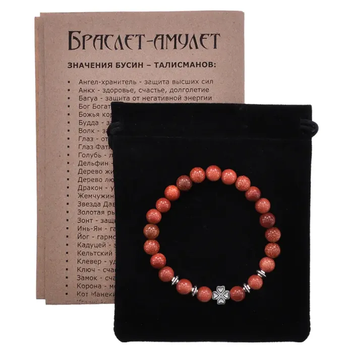 Браслет Клевер с синт. камнем Коричневый авантюрин 8мм BSH-06-01S