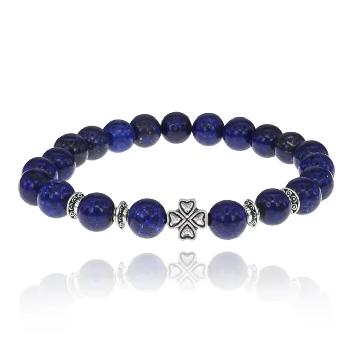 Браслет Клевер с нат.камнем Лазурит 8мм BSH-06-10S
