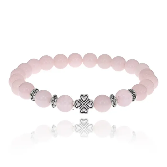 Браслет Клевер с нат.камнем Розовый кварц 8мм BSH-06-15S
