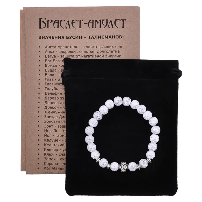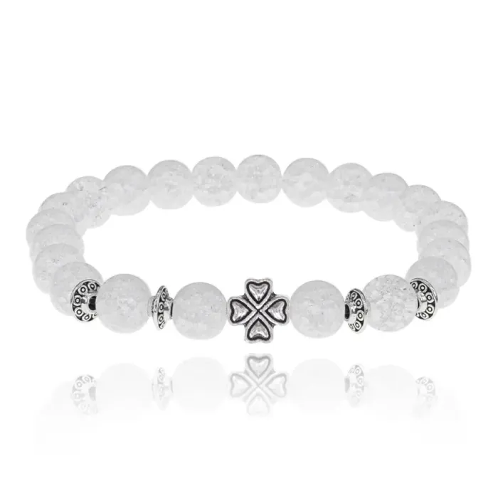 Браслет Клевер с синтетическим камнем Сахарный кварц 8мм BSH-06-16S
