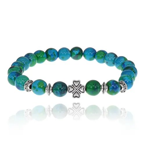 Браслет Клевер с синт.камнем Хризоколла 8мм BSH-06-21S