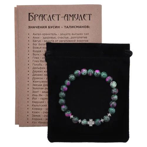 Стрейч-браслет с подвеской в виде четырёхлистного клевера и бусинами из синтетического камня.